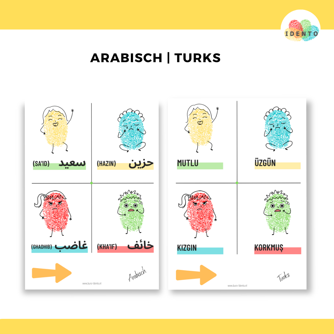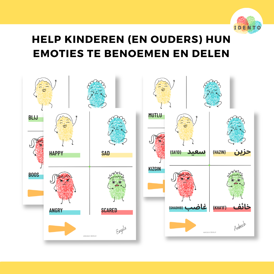 In een wereld vol diverse culturen en talen is het begrijpen en uiten van emoties niet altijd eenvoudig. Daarom presenteert IDENTO met trots de Meertalige Kinder Emotiewijzer – een krachtige tool die taalgrenzen doorbreekt en culturele diversiteit omarmt. Met emoties in vier talen – Nederlands, Turks, Engels en Arabisch – opent deze wijzer de deur naar betere communicatie en begrip, niet alleen voor kinderen maar ook voor volwassenen en ouders die de Nederlandse taal (nog) niet machtig zijn.